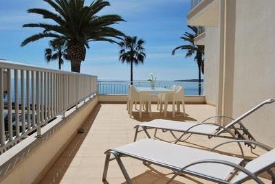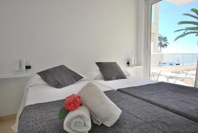 El apartamento cuenta con una superficie total de 80 m2, consta de 2 dormitorios, uno con cama King size y otro con 2 camas individuales, tiene 1 baño con ducha. Sala de estar con cocina completamente equipada, siguiendo una linea moderna y funcional para que su estancia sea lo más cómoda y grata posible. Todos los apartamentos disponen de aire acondicionado con bomba de calor, TV con satélite y conexión WIFI. El apartamento tiene terraza privada con fantásticas vistas al mar mediterráneo. En la zona común dispone de un gimnasio y una terraza con solarium y barbacoa.